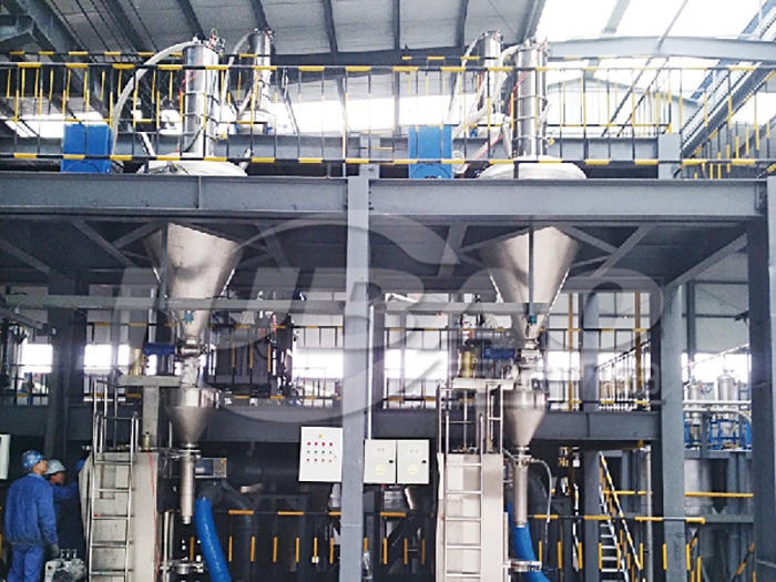 鋰電池石墨負(fù)極材料的智能化真空氣力輸送系統(tǒng),包括噸袋投料站、中間緩存斗、原料倉。
