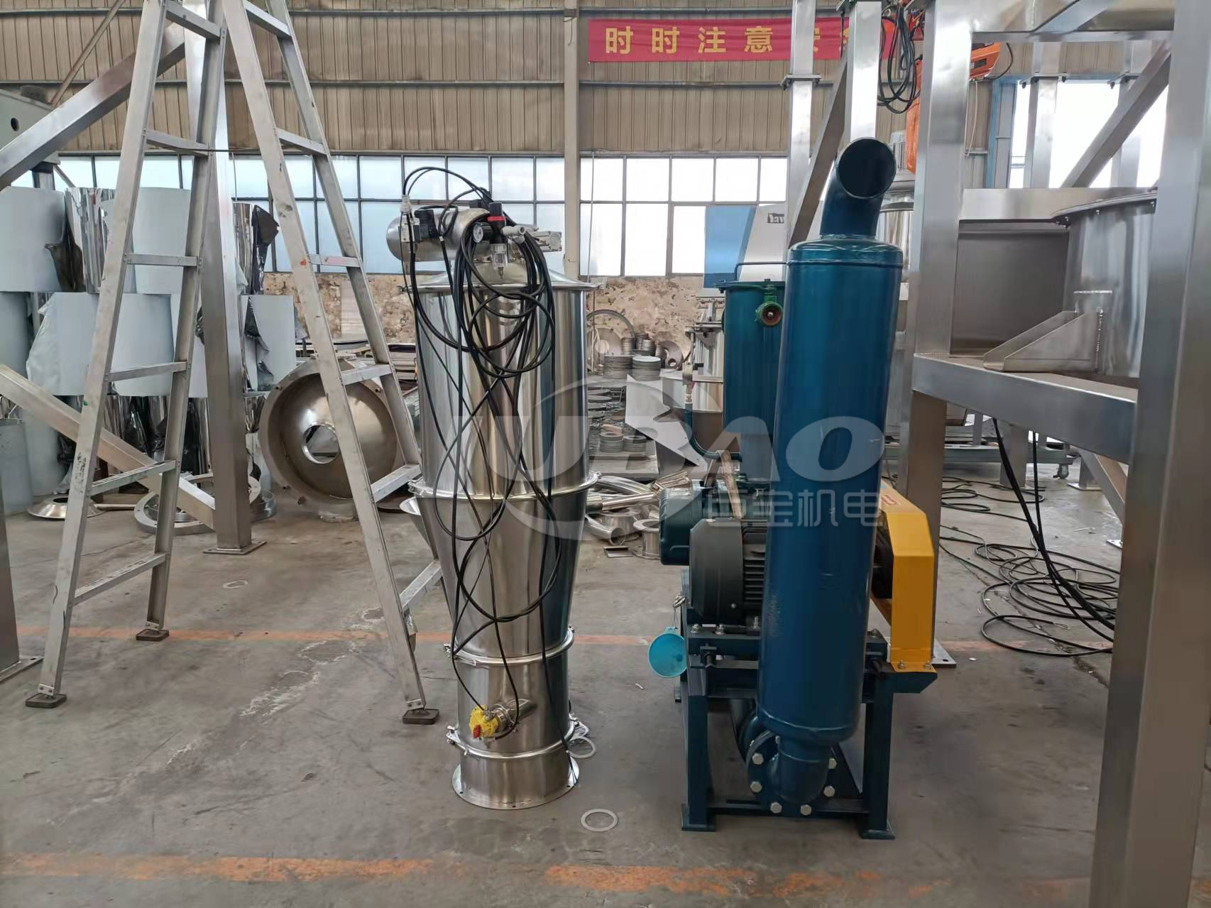 在制藥行業(yè),經(jīng)常會輸送含乙醇的物料。由于乙醇的燃點低,在物料的輸送過程中,稍有不慎就會有爆炸的危險,給周圍的環(huán)境和人身造成極大的威脅。此時,采用帶有氮氣保護裝置的真空輸送設備就顯得非常有必要。