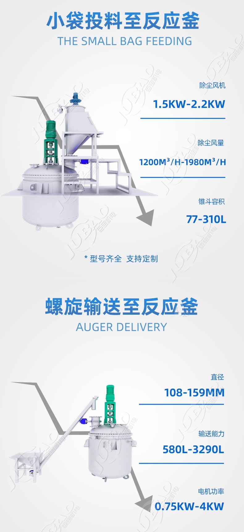 反應(yīng)釜/攪拌罐 投料定量輸送裝置是一種用于將原料按照預(yù)設(shè)的量輸送到反應(yīng)釜中的設(shè)備。這種裝置通常由以下幾個(gè)主要部分組成: